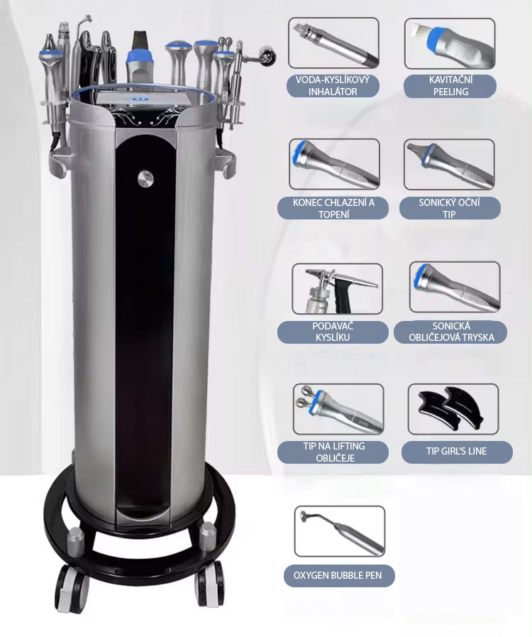 - Inhalátor vodního kyslíku: Odstraňuje černé tečky a akné, hluboké čištění pleti.